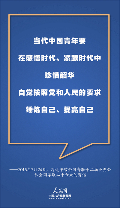 ——2015年7月24日,習(xí)近平致全國青聯(lián)十二屆全委會和全國學(xué)聯(lián)二十六大的賀信