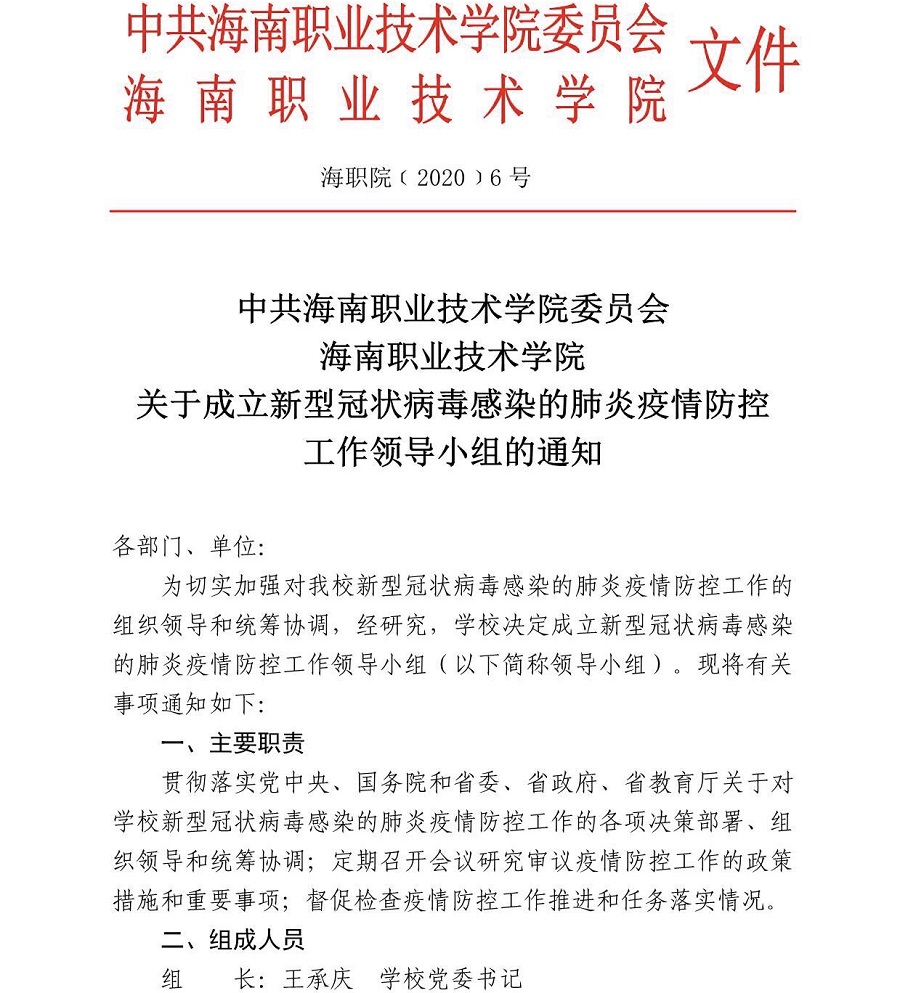 關(guān)于成立新型冠狀病毒感染的肺炎疫情防控工作領(lǐng)導(dǎo)小組的通知
