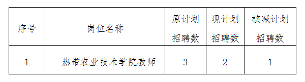 依據(jù)《海南職業(yè)技術(shù)學(xué)院2023年第二次公開招聘工作人員公告(第1號(hào))》,考試招聘崗位的招聘人數(shù)與應(yīng)聘該崗位經(jīng)資格審查符合條件的人數(shù)必須達(dá)到1:3(含3)的比例才能開考,目前有個(gè)別招聘崗位的計(jì)劃招聘數(shù)未達(dá)到全部開考比例要求,應(yīng)按規(guī)定進(jìn)行核減,具體情況如下: