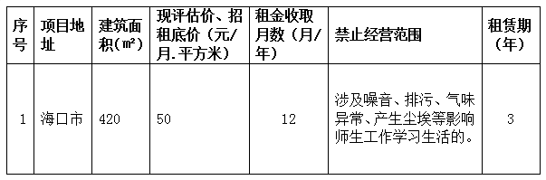 海南職業(yè)技術學院經(jīng)營性場地招租公告