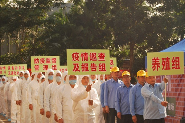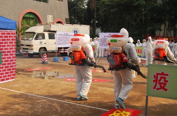 我校生物工程學院院長鄭繼昌教授和卓雪麗同學主持本次演練活動。以20131119日假定AB區(qū)C鎮(zhèn)D村富龍養(yǎng)殖場暴發(fā)高致病性禽流感疫情為背景進行演練。演練共分為疫情巡查,發(fā)現(xiàn)疫情;疫情報告;疫情核實和流行病學調查;應急預案啟動;疫情處置以及疫情解除等六個場景。