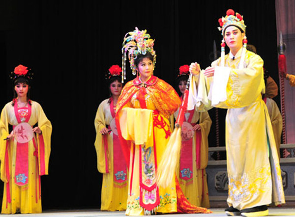 1223,??谑协倓F(tuán)的大型古裝瓊劇《夜明珠》在我校大禮堂演出。
