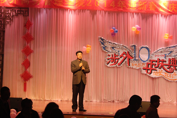 代校長王安興對(duì)我院近十年來取得的成績表示肯定,祝愿我們能夠在今后的日子里越辦越好,希望客座教授履行職責(zé),支持幫助涉外商務(wù)管理學(xué)院的全面發(fā)展。