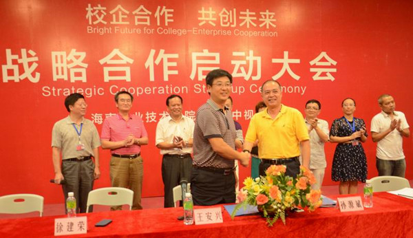 據(jù)了解,海南中視集團是海南省民營文化龍頭企業(yè),也是全國“新三板”海南省首家上市公司。為充分發(fā)揮校企雙方的優(yōu)勢,為企業(yè)培養(yǎng)更多高素質(zhì)、高技能的應(yīng)用型人才,同時也為學(xué)生見習(xí)、實習(xí)、就業(yè)提供更大空間,雙方同意建立校企合作關(guān)系,在海職院共同舉辦“中視文創(chuàng)班”,為中視集團定向培養(yǎng)高素質(zhì)的文化產(chǎn)業(yè)應(yīng)用型人才。