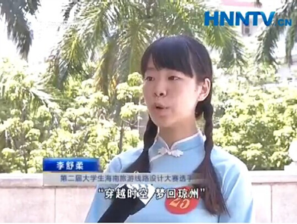 隨后我校兩名同學(xué)分別接受了海南電視臺(tái)的采訪(fǎng),海南新聞聯(lián)播77日晚播出。此次大賽成績(jī)將在7月中旬進(jìn)行公布,組委會(huì)決定在2014710月舉辦獲獎(jiǎng)作品的市場(chǎng)化推廣,進(jìn)行為期四個(gè)月的“2014大學(xué)生海南旅游季,通過(guò)廣泛發(fā)動(dòng)大學(xué)生群體參與休閑旅游季的各項(xiàng)活動(dòng),喚起大學(xué)生熱愛(ài)海南的濃厚情感,同時(shí),讓大學(xué)生們將最美的海南傳播給親人、朋友,更好的宣傳海南,提高海南國(guó)際旅游島的美譽(yù)度。