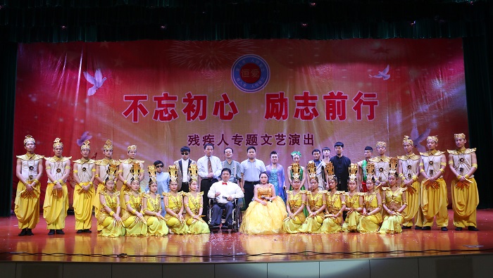 11月20日,江西華愛(ài)特殊文化藝術(shù)團(tuán)、河北恒愛(ài)殘疾人藝術(shù)團(tuán)為學(xué)校師生獻(xiàn)上一場(chǎng)以“不忘初心•勵(lì)志前行”為主題的特殊文藝演出。