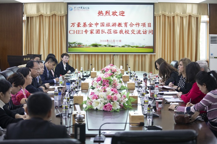 12月11日上午,美國萬豪基金會萬禮豪程項目團(tuán)隊首席資深學(xué)術(shù)顧問杜靖德教授(Gene Lamke)、萬禮豪程項目傳訊總監(jiān)兼教學(xué)顧問袁詩琳(Linda Roundtree)、萬豪基金會萬禮豪程項目總監(jiān)董佳一行六人到訪我校旅游學(xué)院。學(xué)校校長助理、旅游學(xué)院院長吳肖淮,旅游學(xué)院副院長顏燕接待了來訪團(tuán)隊。
