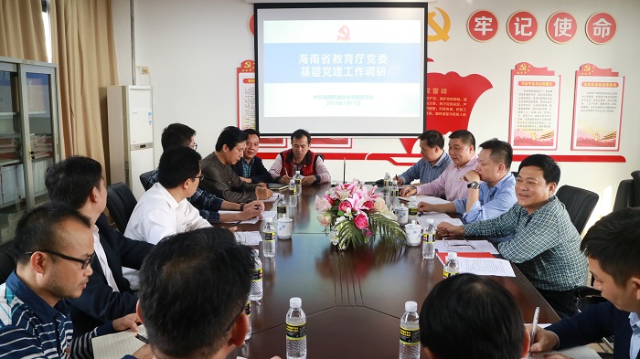 為了扎實(shí)做好2018 年基層黨建工作述職評(píng)議考核工作,1月11日下午,由海南省教育廳高教處副處長(zhǎng)蘇永光擔(dān)任組長(zhǎng)的調(diào)研組到我校開(kāi)展基層黨建工作調(diào)研。我校黨委書(shū)記王承慶,黨委副書(shū)記周炳才,黨委委員符興干及各基層黨組織負(fù)責(zé)人參加了座談。