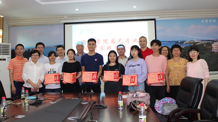 總結(jié)會以視頻的方式回顧了2017級園藝技術(shù)專業(yè)學(xué)生的實踐教學(xué)過程。學(xué)生代表分享實踐教學(xué)感受和心得體會。企業(yè)代表與學(xué)院領(lǐng)導(dǎo)共同為優(yōu)秀實踐學(xué)生頒發(fā)證書。