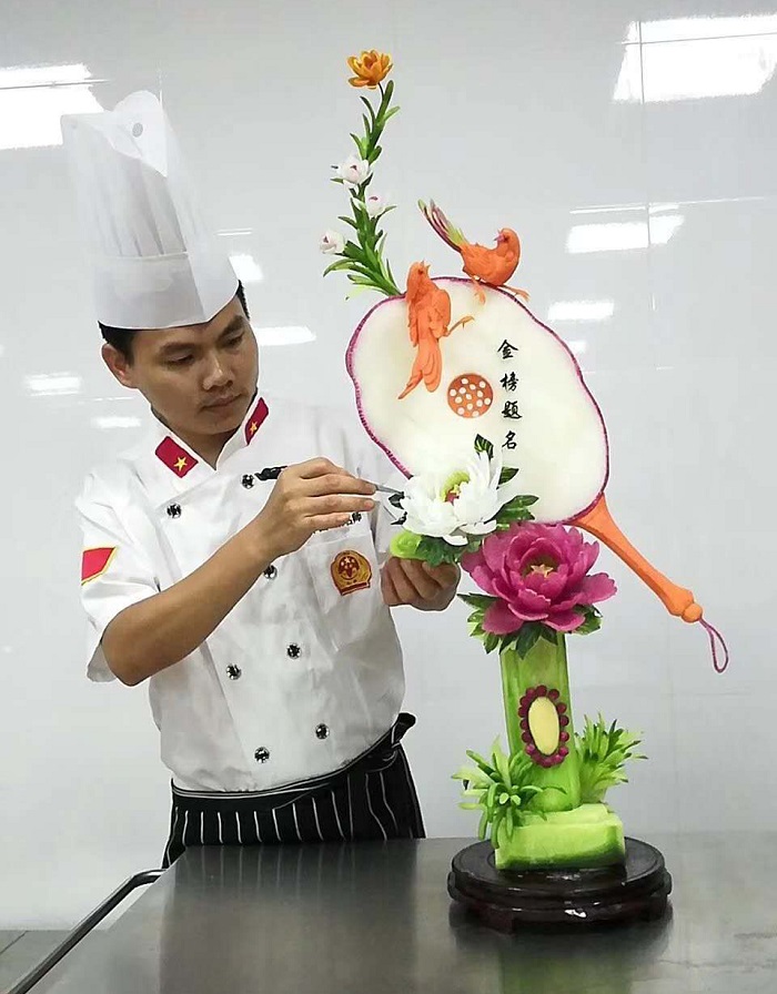 經(jīng)過一個多月的緊張備賽訓(xùn)練,我校參賽選手在高手如云、競爭激烈的賽場上,充分施展專業(yè)技能,在全國烹飪技能競賽(海南賽區(qū))專業(yè)組比賽中,王國寧榮獲果蔬雕刻項(xiàng)目金獎,吳維航、陳榮崇、陳元渤分別榮獲中餐熱菜項(xiàng)目銀獎,鄧秀雪、廖秀奇、林湛昌分別榮獲中式面點(diǎn)銀獎、果蔬雕刻銅獎、中式面點(diǎn)銅獎。在2019年海南省職業(yè)技能大賽(烹飪類)專業(yè)組比賽中,王國寧榮獲果蔬雕刻項(xiàng)目特金獎,吳維航、陳榮崇、陳元渤分別榮獲中餐熱菜項(xiàng)目金獎,鄧秀雪、林湛昌、廖秀奇分別榮獲中式面點(diǎn)金獎、中式面點(diǎn)銀獎、果蔬雕刻銀獎。我校榮獲本次比賽“團(tuán)體優(yōu)勝獎”。