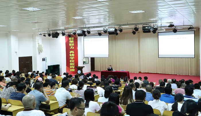 黨委委員、工會(huì)主席林方賀,黨委委員、校長(zhǎng)助理符興干及全體教職工參加了會(huì)議。