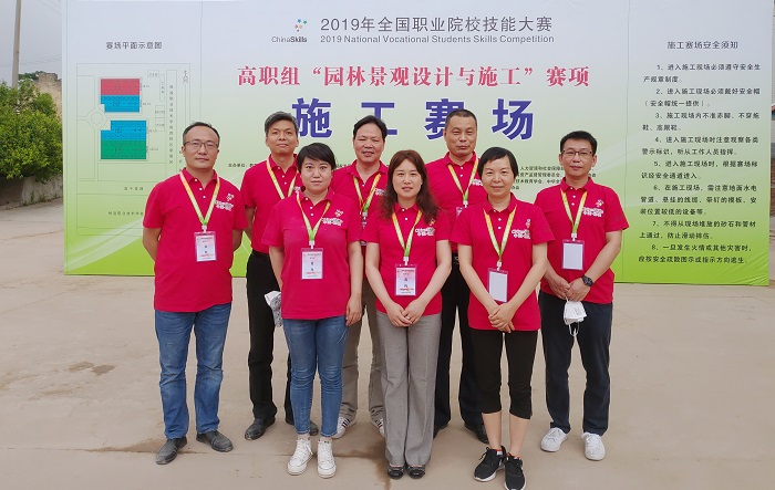 2019年全國職業(yè)院校技能大賽園林景觀設計與施工賽項裁判員合影(熱農學院供圖)