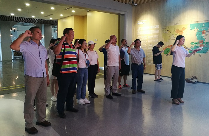 在??谑忻裼慰椭行模w黨員認(rèn)真聆聽講解員的講解,仔細(xì)觀看展廳圖片和視頻,深情回顧??诎l(fā)展歷程,深切感受海口30年來的發(fā)展巨變。隨后,全體黨員在通識教育學(xué)院直屬黨支部書記鄒曙南的帶領(lǐng)下,重溫入黨誓詞,追憶紅色歲月,傳承紅色基因,再次表達(dá)了為黨的事業(yè)奮斗終身的決心和愿望。