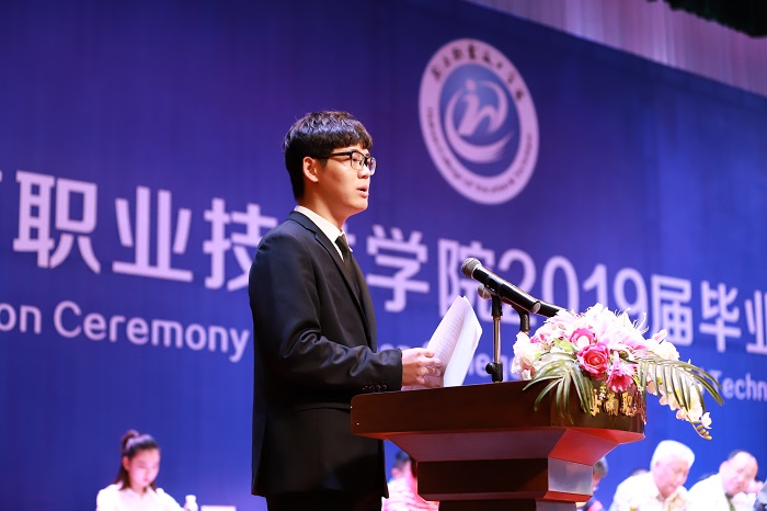 畢業(yè)生代表畢啟豪在發(fā)言中深情回憶了美好難忘的大學(xué)生活,表達(dá)了對(duì)母校、老師、同學(xué)的感恩之情。