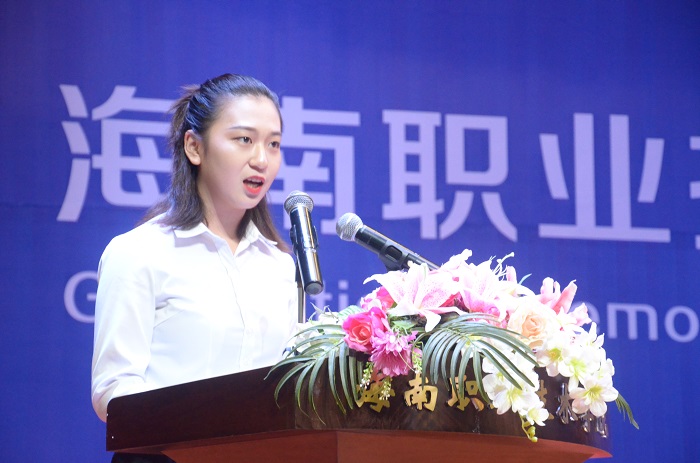在校生代表李佩瑤表達(dá)了對(duì)學(xué)長(zhǎng)學(xué)姐深深地祝福,她說學(xué)弟學(xué)妹們以學(xué)長(zhǎng)學(xué)姐為傲,母校和老師們永遠(yuǎn)是學(xué)長(zhǎng)學(xué)姐強(qiáng)有力的后盾。