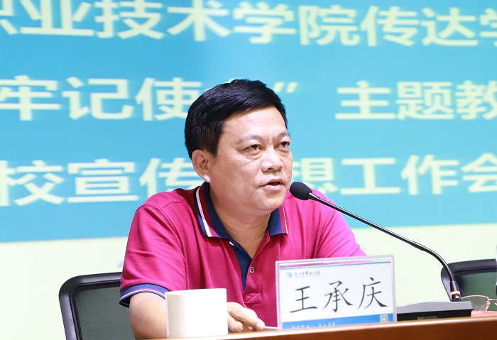 王承慶強(qiáng)調(diào),做好新形勢下的宣傳思想工作,使命光榮、責(zé)任重大、意義深遠(yuǎn)。希望大家以更強(qiáng)的責(zé)任擔(dān)當(dāng)、更實(shí)的工作作風(fēng)、更好的工作舉措,堅(jiān)決有力落實(shí)全面從嚴(yán)治黨要求,切實(shí)提高黨建工作科學(xué)化水平,不斷增強(qiáng)基層黨組織的凝聚力戰(zhàn)斗力,不斷提高宣傳思想工作的感染力和實(shí)效性,切實(shí)推動學(xué)校教育事業(yè)改革發(fā)展,在建設(shè)專業(yè)特色鮮明、產(chǎn)教深度融合、國際化辦學(xué)優(yōu)勢突出的國內(nèi)知名、省內(nèi)一流高職院校階段性任的工作中作出新的更大貢獻(xiàn)。