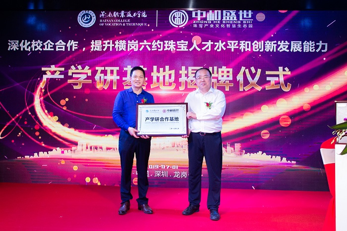 7月1日,我校與深圳中和盛世珠寶文化發(fā)展有限公司校企合作戰(zhàn)略協(xié)議簽約暨產(chǎn)學研合作基地(深圳)揭牌儀式在中和盛世多功能會議廳隆重舉行。