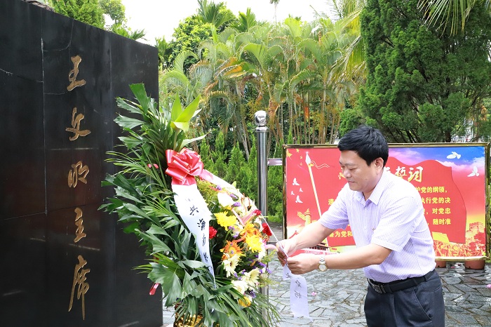 向瓊崖革命先驅(qū)敬獻(xiàn)花籃(黨委宣傳部供圖)