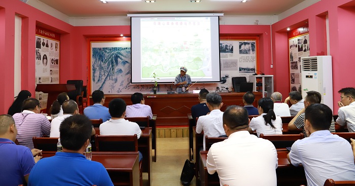 老館長(zhǎng)王學(xué)廣同志為全體人員講述瓊崖革命戰(zhàn)爭(zhēng)史(黨委宣傳部供圖)