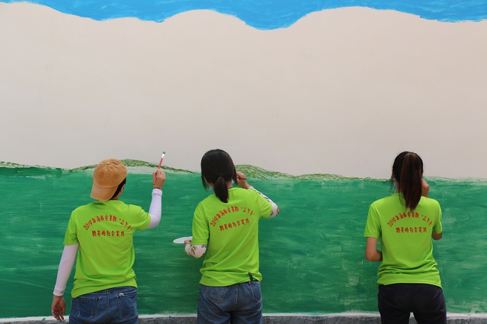 隊(duì)員們繪制壁畫(旅游學(xué)院供圖)
