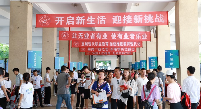 雨后的海職,空氣越發(fā)清爽。第一次與海職相遇,雖步履匆匆,心中卻激動(dòng)欣喜不已。走進(jìn)學(xué)校大門,紅色的迎新拱門立柱、開(kāi)放的噴泉、迎風(fēng)招展的彩旗、舉目皆是的紅色橫幅、豐富多彩的展架、嚴(yán)陣以待的迎新老師、細(xì)心周到的志愿者都在向新生和家長(zhǎng)傳遞著海職人的熱烈歡迎和親切問(wèn)候。