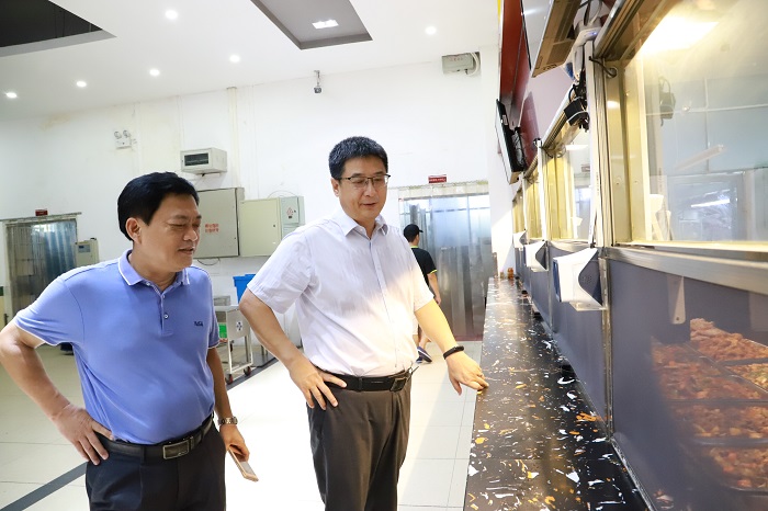 在學(xué)生食堂,王安興、王承慶囑咐后勤工作人員,海南天氣炎熱,一定要保障食材的新鮮,讓師生吃得放心吃得安心。同時(shí),食堂飯菜的種類和口味要多樣化,增加菜品的種類,以滿足來(lái)自不同省份學(xué)生的口味。