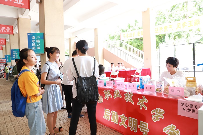 后勤文明號(hào)為新生和家長(zhǎng)免費(fèi)提供物品(黨委宣傳部供圖)