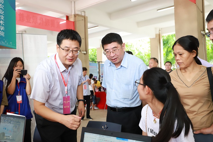 王路來(lái)到熱帶農(nóng)業(yè)技術(shù)學(xué)院新生接待點(diǎn)時(shí),王安興介紹說(shuō),這是海南省高職里面唯一的涉農(nóng)專業(yè)。學(xué)院現(xiàn)設(shè)有園林技術(shù)、畜牧獸醫(yī)、園藝技術(shù)、食品營(yíng)養(yǎng)與檢測(cè)等專業(yè)。看到正在報(bào)到的畜牧獸醫(yī)專業(yè)的新生,王路囑咐新生,學(xué)農(nóng)專業(yè)挺好的,海南有先天的區(qū)位優(yōu)勢(shì),要努力學(xué)習(xí)。