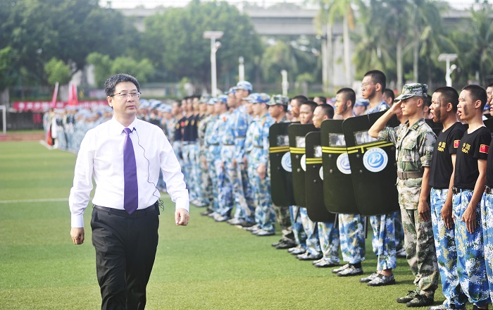 王安興代表學(xué)校黨政領(lǐng)導(dǎo)班子向承擔(dān)此次新生軍訓(xùn)任務(wù)的部隊(duì)官兵們致以崇高的敬意和衷心的感謝,向同學(xué)們提出三點(diǎn)希望:一是天道酬勤,自當(dāng)奮發(fā)圖強(qiáng);二是業(yè)道酬精,自當(dāng)精益求精;三是人道酬誠(chéng),自當(dāng)誠(chéng)實(shí)守信。希望你們謹(jǐn)記學(xué)校文化廣場(chǎng)紅墻上的立志、修身、勤學(xué)、善思、樂練、篤行,不辜負(fù)三年大學(xué)時(shí)光,努力成才成人,為海南自貿(mào)區(qū)(港)建設(shè)貢獻(xiàn)力量,努力成為中華民族偉大復(fù)興的建設(shè)者。