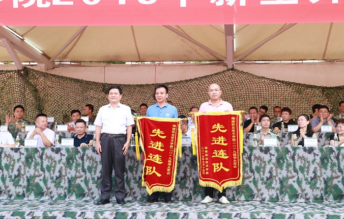 王承慶為先進(jìn)連隊(duì)獲獎(jiǎng)學(xué)院頒發(fā)錦旗(黨委宣傳部供圖)