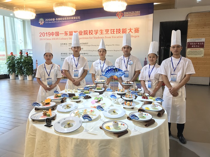 9月19至21日,2019中國-東盟職業(yè)院校學生烹飪技能大賽在南寧職業(yè)技術學院隆重舉行。我校烹調(diào)工藝與營養(yǎng)專業(yè)學生在郭利芳、林書芳老師的指導下參加比賽并榮獲佳績。