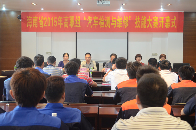2015年4月18日,由海南省教育廳、海南省人力資源和社會保障廳主辦、我校工業(yè)與信息學院承辦的2015年海南省職業(yè)院校技能大賽汽車檢測與維修技能競賽(高職組)在我校舉行。海南省教育廳高教處副調研員鄧昌清,工業(yè)與信息學院院長馮義夫、黨總支副書記魏紅俊、副院長尹利平,全省5所院校代表隊45名選手以及領隊老師參加開幕式,我校教務處副處長王云惠主持。