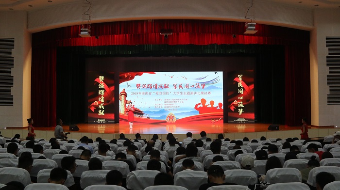 海南省“愛(ài)我國(guó)防”大學(xué)生主題演講比賽現(xiàn)場(chǎng)(學(xué)生工作處供圖)