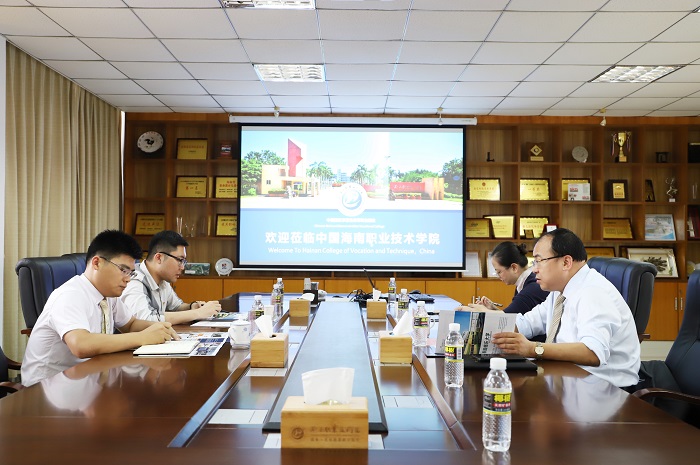 吳肖淮請高彬轉(zhuǎn)達對Krasae Chanawongse校長和格樂大學管理委員會主席王長明先生的衷心感謝和良好祝愿并從歷史沿革、地理位置、學科建設、人才培養(yǎng)、國際合作等方面介紹了海職院的發(fā)展情況。吳肖淮表示,中泰兩國地緣相近、文化相融、民眾相親,海職院高度重視同泰國高等院?;蚪逃龣C構(gòu)的合作交流,愿同格樂大學在各方面展開合作。