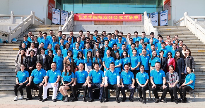 出席藝術(shù)學(xué)院校友分會(huì)成立大會(huì)的領(lǐng)導(dǎo)、嘉賓合影留念(藝術(shù)學(xué)院供圖)