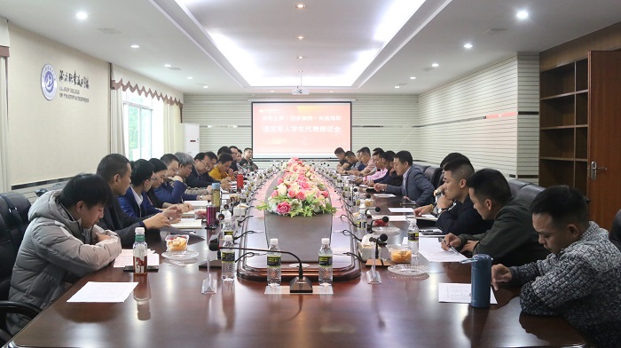教務(wù)處、各二級(jí)學(xué)院院長(zhǎng)和20余名擴(kuò)招學(xué)生(退役軍人)代表參加座談會(huì)。