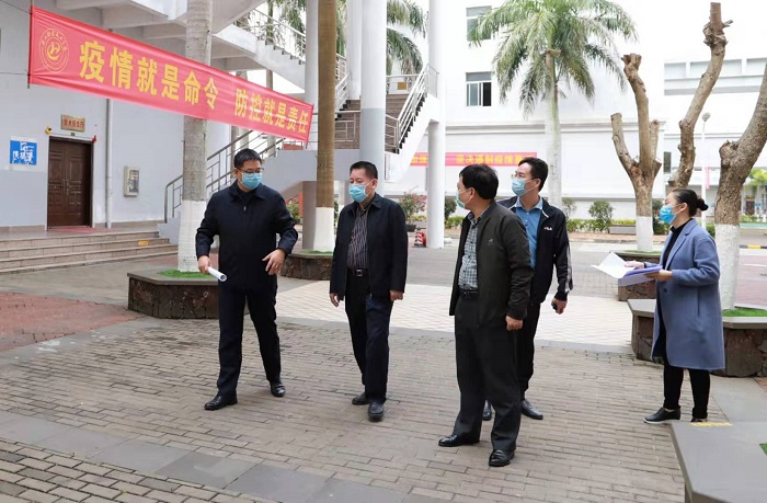 2月1日上午,海南省教育廳二級巡視員范敏、職業(yè)教育與成人教育處副處長李麗雯來到海南職業(yè)技術學院就新型冠狀病毒感染的肺炎疫情防控工作進行督查指導。學校黨委書記王承慶、校長王安興陪同檢查。