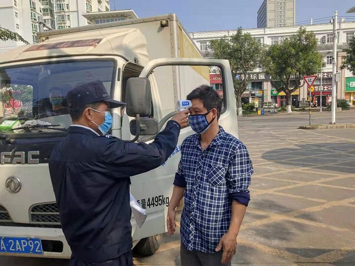 學(xué)校門崗檢測入校人員體溫(黨委宣傳部供圖)