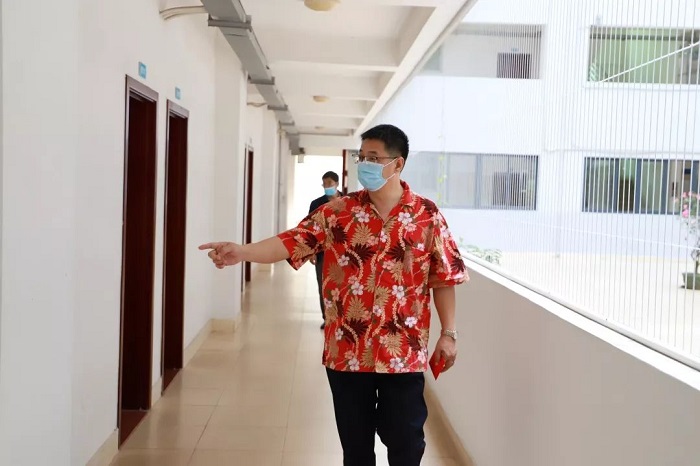 校長、學(xué)校疫情防控工作領(lǐng)導(dǎo)小組執(zhí)行組長王安興檢查學(xué)生宿舍消毒和管理情況(黨委宣傳部供圖)