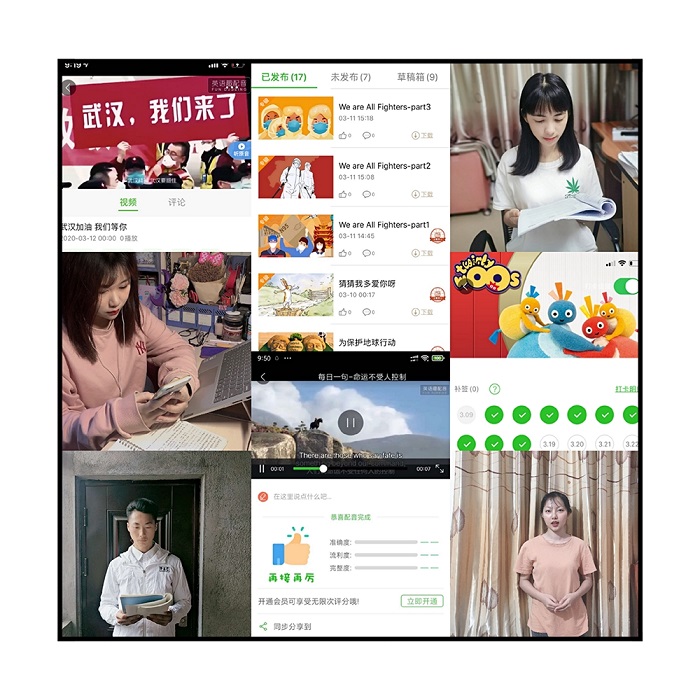 “I Share,I Show” 英語第二課堂線上主題系列活動(dòng)主要包括詞海尋寶、英語趣配音、說中國(guó)故事等內(nèi)容。詞海尋寶要求參與學(xué)生堅(jiān)持每日單詞打卡,分享單詞記憶方法;英語趣配音則是學(xué)生每日分享配音作品,大膽開口說英語;說中國(guó)故事要求學(xué)生每周欣賞一至兩部包含中國(guó)文化的英文電影或記錄片,完成有關(guān)中國(guó)文化主題英文演說。全校參與英語第二課堂線上活動(dòng)的學(xué)生達(dá)600余人,學(xué)生參與度高學(xué)習(xí)熱情高漲。