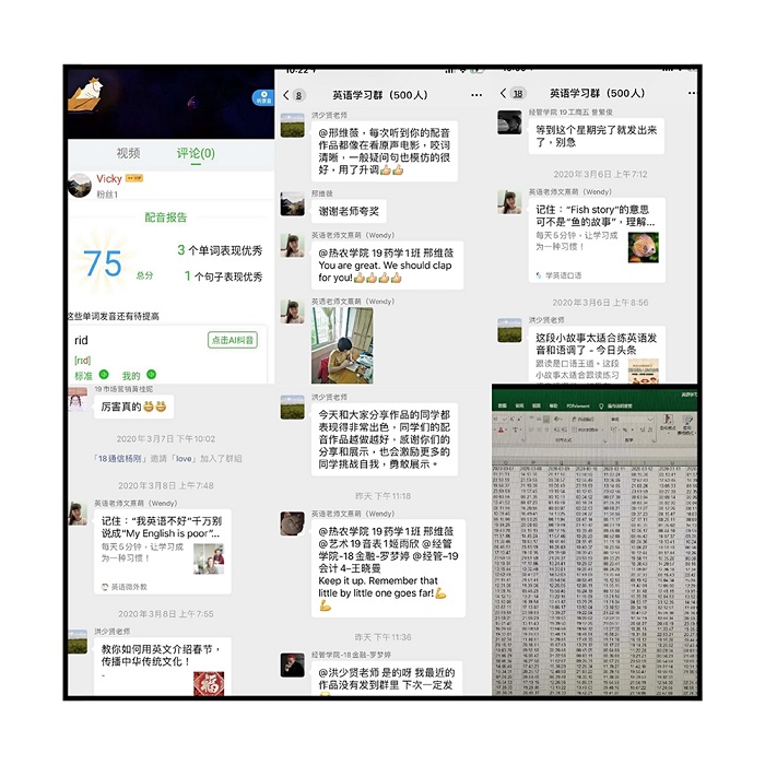 在本次活動(dòng)中,通識(shí)教育學(xué)院文熹萌、洪少賢兩位老師組織建立了英語第二課堂學(xué)習(xí)群,兩位老師精心設(shè)計(jì)學(xué)習(xí)內(nèi)容,悉心指導(dǎo)學(xué)生完成活動(dòng)任務(wù),及時(shí)點(diǎn)評(píng)學(xué)生作品,極大地提高了學(xué)生學(xué)習(xí)英語的積極性、主動(dòng)性和創(chuàng)造性。
