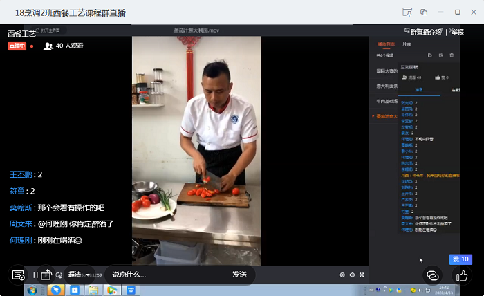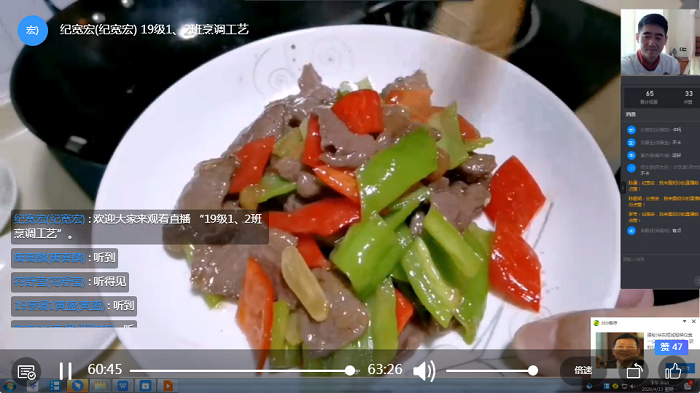 與傳統(tǒng)的課堂教學(xué)相比,線上教學(xué)是一種全新的挑戰(zhàn)。為了實(shí)操教學(xué)效果,烹調(diào)工藝與營(yíng)養(yǎng)專(zhuān)業(yè)教師提前做好直播準(zhǔn)備,錄制菜品制作過(guò)程,經(jīng)過(guò)剪輯,結(jié)合直播課堂在線講解,同學(xué)們?cè)诩覍?duì)照實(shí)操練習(xí),云體會(huì)手把手教學(xué),做到同線下教學(xué)等質(zhì)同效。在色香味俱全的直播中,授課教師通過(guò)在線操作授課、線上輔導(dǎo)答疑互動(dòng),最大程度的了解學(xué)生學(xué)習(xí)結(jié)果和掌握程度,有效地彌補(bǔ)線上教學(xué)的缺陷。