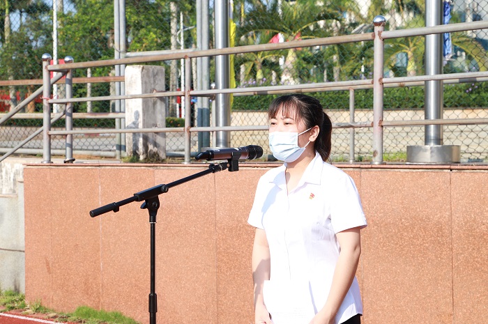 周炳才代表學校在國旗下深情講述了14億中國人民在以習近平同志為核心的黨中央堅強領導下,眾志成城、萬眾一心、共克時艱,共同抗“役”的中國故事,勉勵同學們在磨難中成長,從磨難中奮起,不負時光,不負自己,不負韶華,謹記習近平總書記的教導,堅定信仰、砥礪品德,珍惜時光、勤奮學習,努力成長為有理想、有本領、有擔當?shù)纳鐣髁x建設者和接班人,為實現(xiàn)中華民族偉大復興中國夢貢獻智慧和力量。