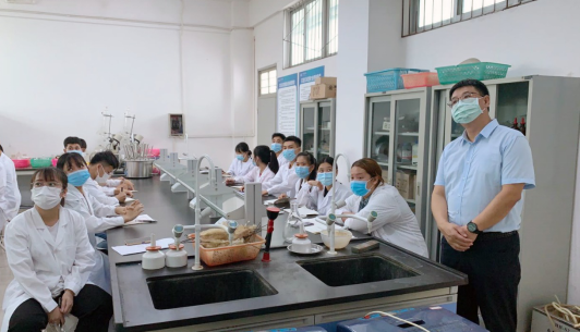 5月18日上午,王安興校長(zhǎng)在藥物合成實(shí)訓(xùn)室了解學(xué)生實(shí)訓(xùn)課情況(校務(wù)辦公室供圖)