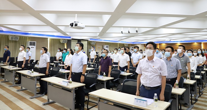 王承慶與2019年度海南省優(yōu)秀團(tuán)支部、優(yōu)秀團(tuán)總支代表合影(黨委宣傳部供圖)