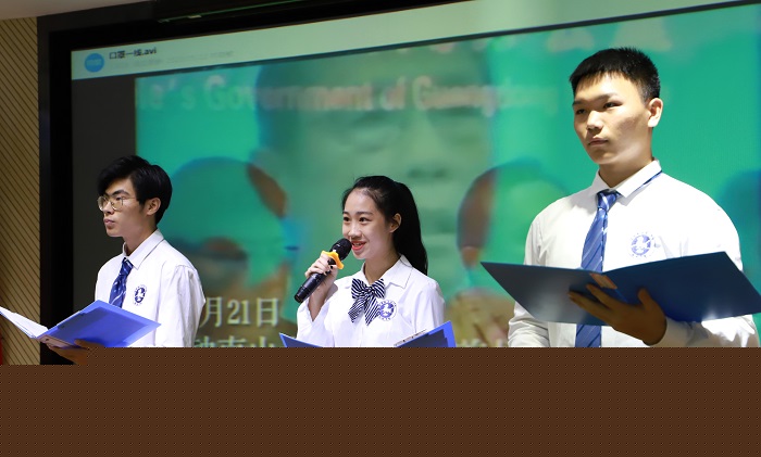 團(tuán)委副書記倪嘯旻宣讀海職院2019年度“五•四”表彰文件,2019年海南省優(yōu)秀共青團(tuán)團(tuán)干王安琦作為獲獎(jiǎng)青年代表發(fā)言。