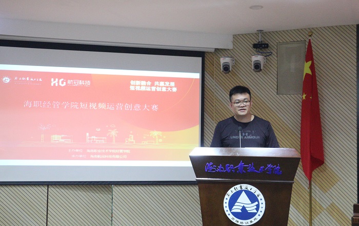 許觀在講話中介紹了海南航冠科技有限公司的概況和發(fā)展歷程,回顧了和海職院合作的發(fā)展歷程,講述了直播和短視頻的發(fā)展現(xiàn)狀,勉勵同學們以“企業(yè)導師+學院教師”組成“直播視覺營銷”導師團,扎實專業(yè)知識,理論與實踐相結合,努力成為“技能+學歷”的高素質技術技能人才,并預祝同學們在本次大賽中取得優(yōu)異的成績。