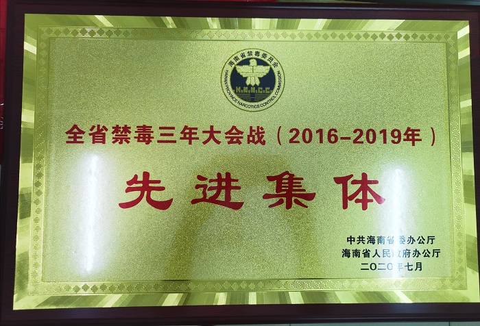 海南職業(yè)技術學院榮獲全省禁毒三年大會戰(zhàn)“先進集體”榮譽稱號(學生工作處供圖)