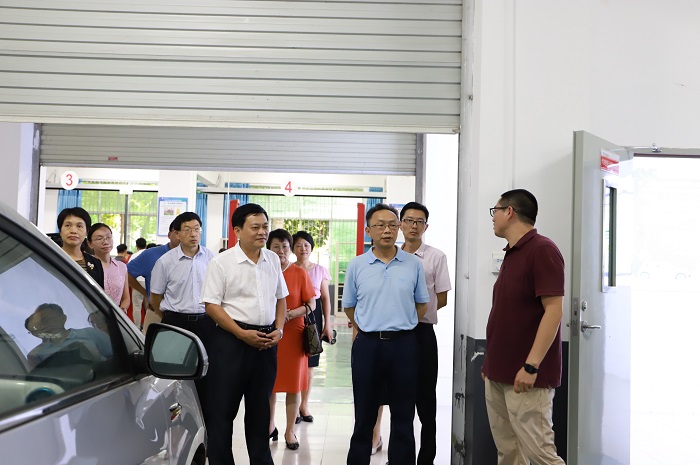 省政協(xié)副主席侯茂豐參觀我校新能源汽車專業(yè)實訓室(校務辦公室供圖)
