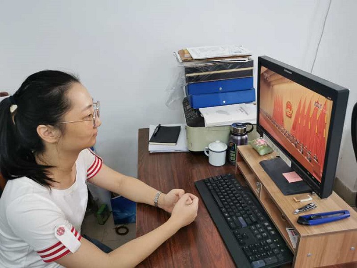全體人員集中收看表彰大會(huì)(黨委宣傳部供圖)